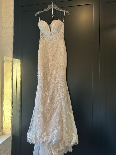 Minor alterations only to replace the crystal buttons with satin ones (see picture of back of dress). Wedding size 10, ideal for a street size 6-8. Happy to provide measurements or more pictures!