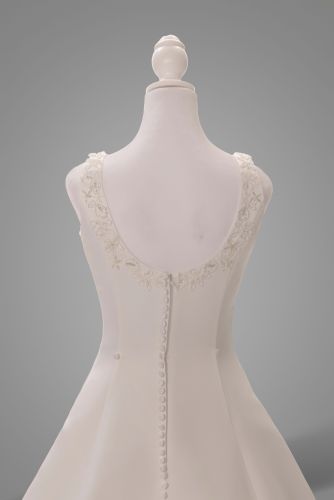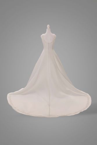 This Krystal Rose wedding gown is beautifully crafted and well protected. Designed by Moonlight Couture, it perfectly embodies elegance and romance, making it the ideal choice for any bride looking to make unforgettable memories on her special day. The A-line silhouette beautifully flatters any figure, while the square neckline adds a touch of modern sophistication.