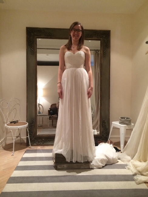 The strapless dress is made of a soft ivory silk-satin. The skirt is a fully gathered silk chiffon. It is fully lined in silk charmeuse. The skirt of the dress is made of soft gathered silk chiffon.