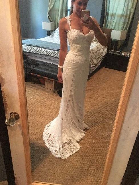 This dress retails at 5,600. Its from Israeli designer Riki Dalal. Its a size 2 and my measurements are 34, 25, 37. Please note that it is a petite dress especially up top. Its very flattering and sexy though!