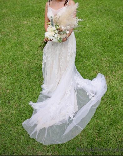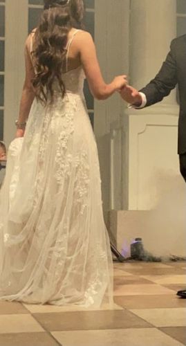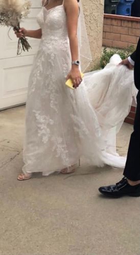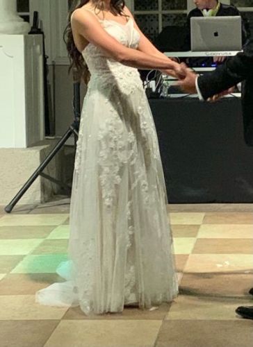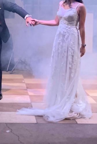 My dress is altered. I added hidden button on the back to lift your gown after your ceremony if you want to dance comfortably.