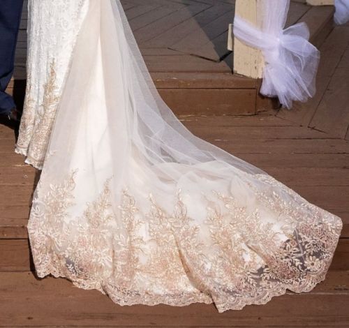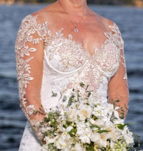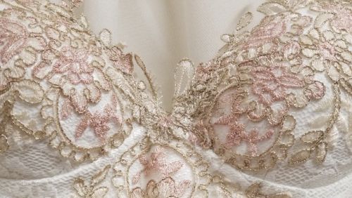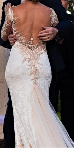 The dress was custom-made in Europe. The dress fabric is soft stretch lace so even when I listed a size 2-4 it will be more like a 4 which is my size. The dress has a Built-in bra and my cup size is 34B, but the cup is a bit bigger so I used Silicone Nipple covers Strapless Adhesive Sticky Bra to fill up the cup.