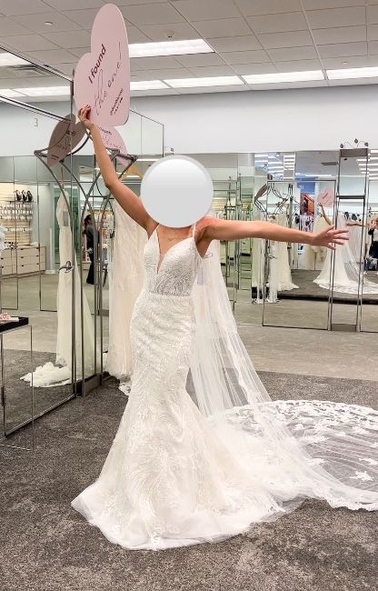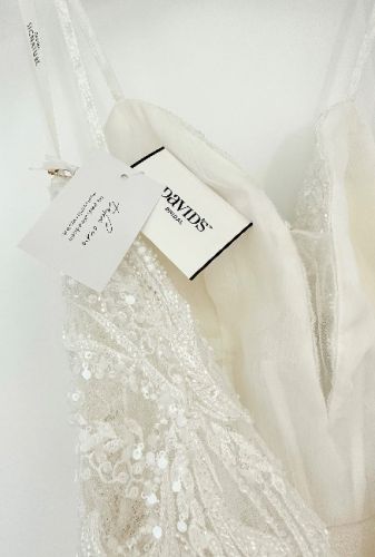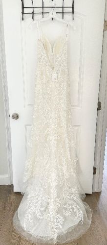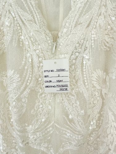 This wedding dress is the SWG941 style by Galina. I bought this dress in David Bridals , it has not been professionally cleaned and is unaltered. I would describe it as a wedding dress