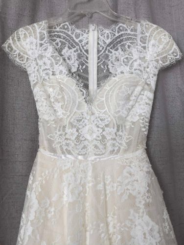 Watters - Aella (Style 66701B): cerca lace gown with covered illusion back, cap sleeves and full a-line skirt.