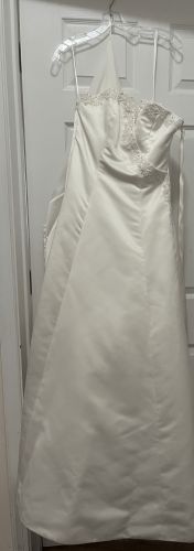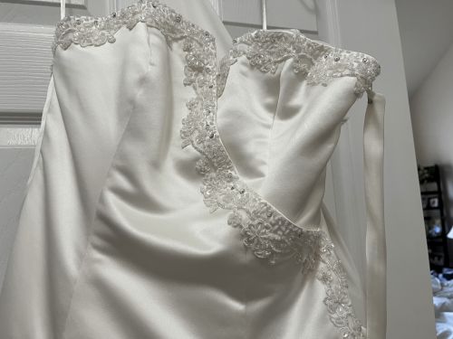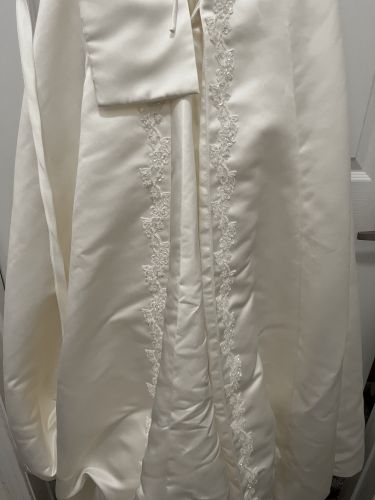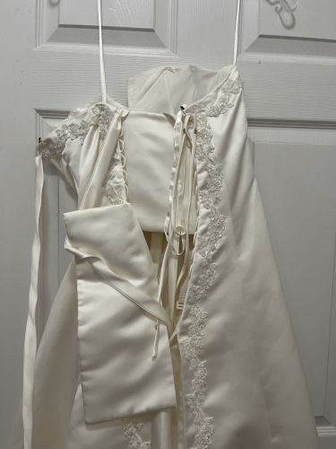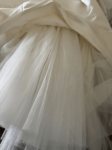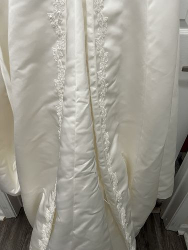 It was never worn and kept in a wedding dress bag until it was dry-cleaned in September 2023. It's a great deal.
