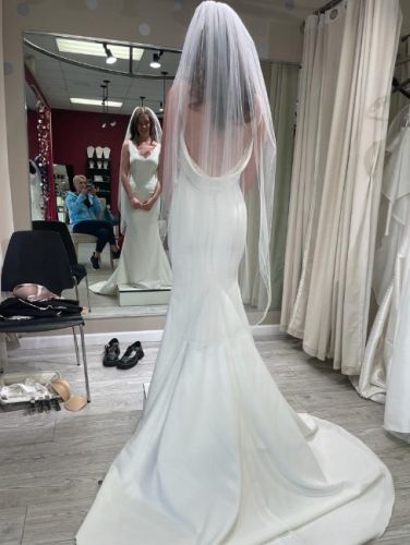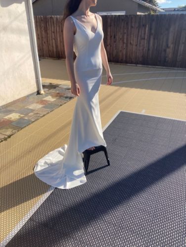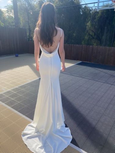 I bought this wedding dress in late January 2024 in Los Angeles and then changed plans and decided to elope, so it is never worn for a wedding event. I do not wear heels or shapewear in the photos, so you can see the dress in its plainest form.