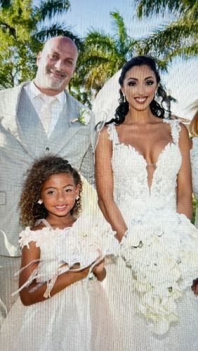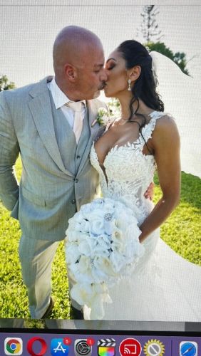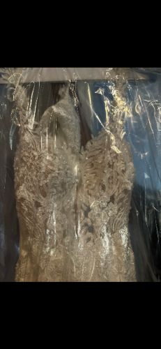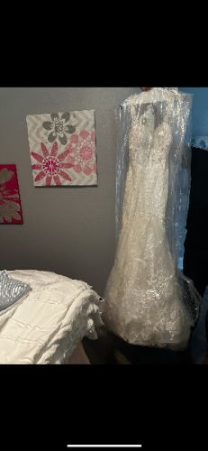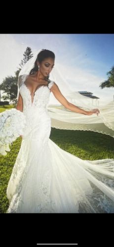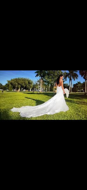 Beautiful mermaid gown custom made. Chantilly lace and long train with details! Only worn for a couple hours. Size 8 but alteted to a size 4!