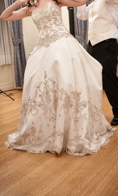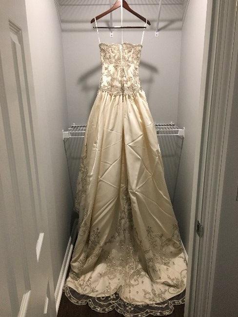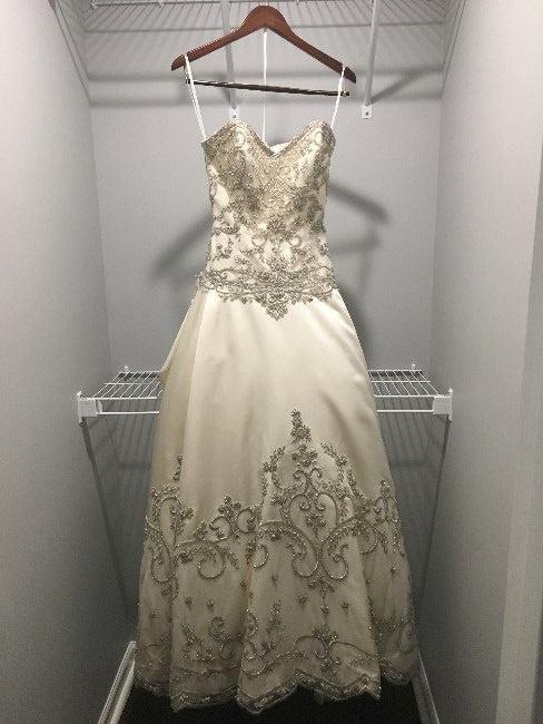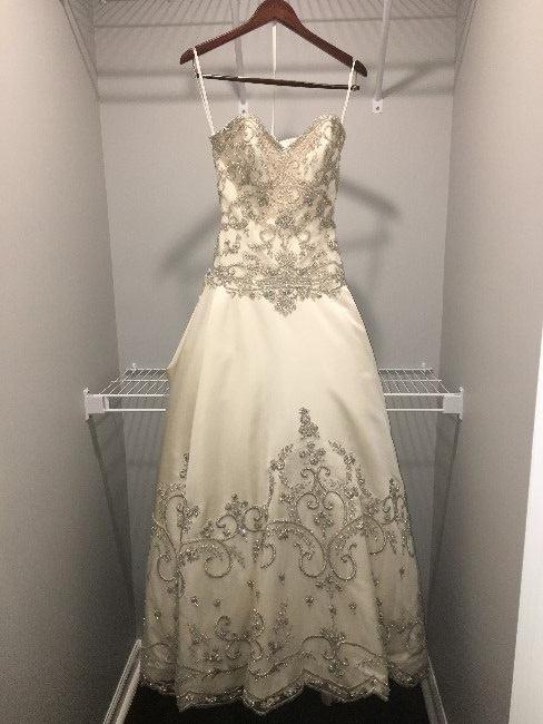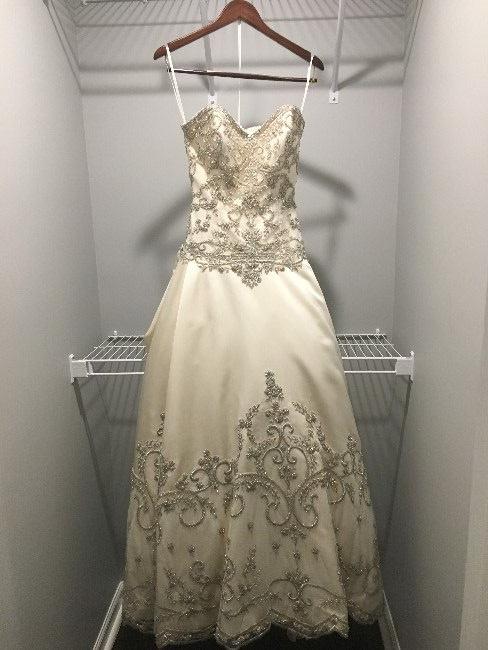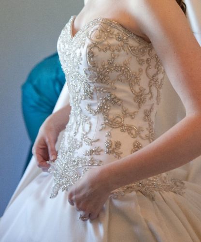 This dress was purchased at Bridals by Lori which is featured on the series Say Yes to the Dress. It was worn for indoor bridal portraits and a non-alcoholic indoor wedding in Charleston, SC. It's a beautiful ball gown dress. It was purchased as a size 8 but altered to fit a street size 4-6.