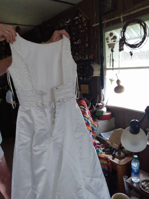 Beautiful Mori lee satin wedding dress. 7 foot train and vail