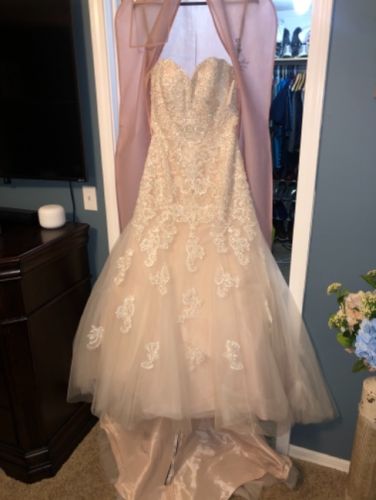 Martin Thornburg for Mon Cherie Bridal style “Beryl” Mermaid style dress. Lace and tulle overlay. Beaded bodice. Ivory and blush color. Size 8. Brand new with tags. Never worn or altered. Found another dress elsewhere. Retail $1700.