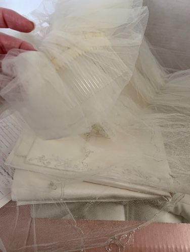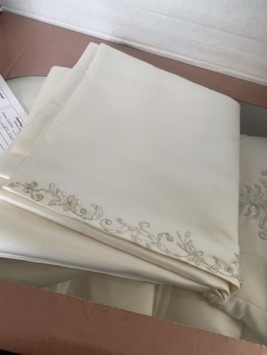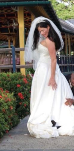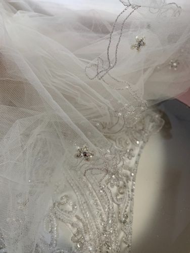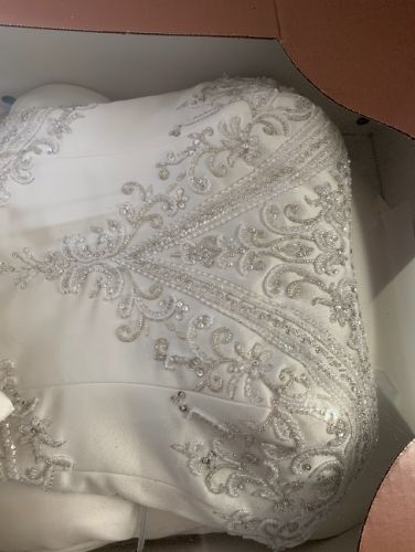Very classy and comfortable wedding gown. Wore once of course would make for a very lucky bride to get at such a discount. We paid over 1000 for it. It has a long detailed train and classy detail on dress