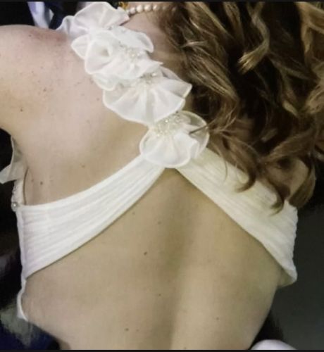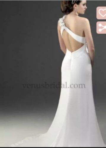 Women’s Venus asymmetrical wedding dress. Tailored to a size 6, also of note; buttons have been added
