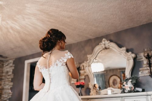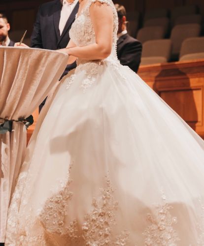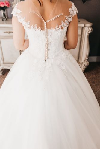 I am 5’5, weight 140 lb. Size 6. This dress has a corset and ties, and buttons, I wore a hoop with mine, if you’re my height and don’t wear the hoop it’ll be too long, you’ll need it altered but without heels and WITH hoop it was perfect! Worn for a couple hours. Cleaned