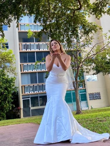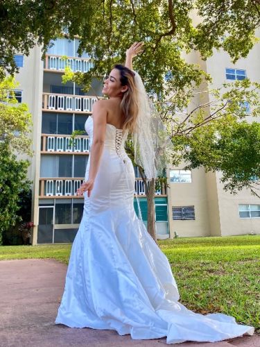 Beautiful Ella Rosa Wedding Gown. Size 8 (very small). 50 inches long, plus 48 inch train.