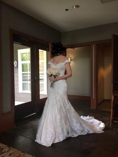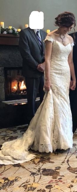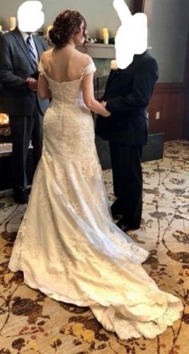 Essence of Australia wedding dress. Excellent condition. It’s been altered but if I were to guess it’s about a size 4 on the top an about a 6 on the bottom (blame the hips). No tears or stains.