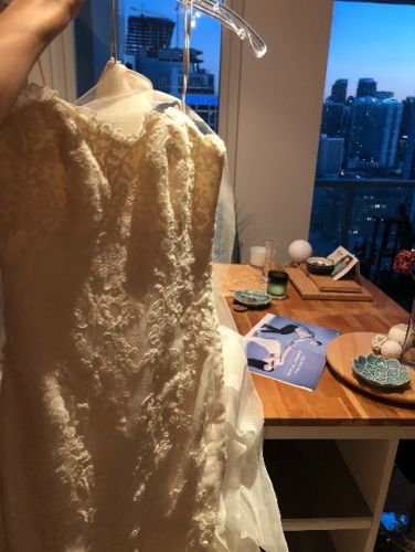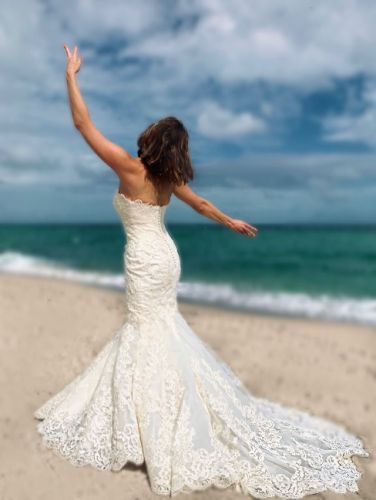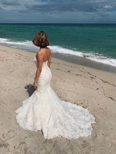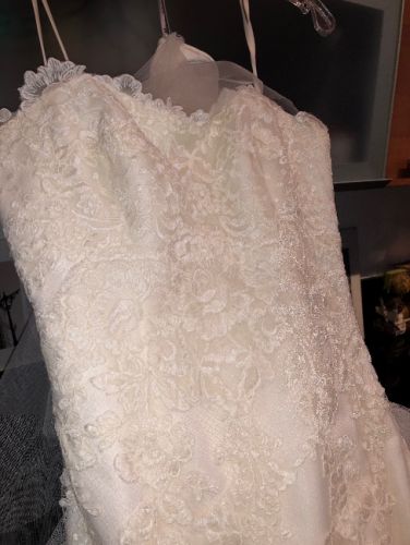 Brand Enzoani. Style Dakota size 6. Ivory color. Never used for a wedding event, never altered, kept in the manufactured bag wedding dress from Daisy Tarsy on miracle mile in Coral Gables. Help me lighten my load before moving. This is an ivory, lacy, classic swirl and cicle lace design with exquisite detailing. Beautiful train.