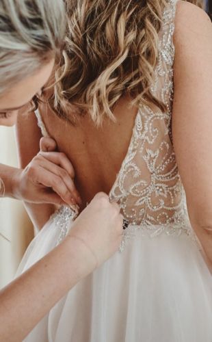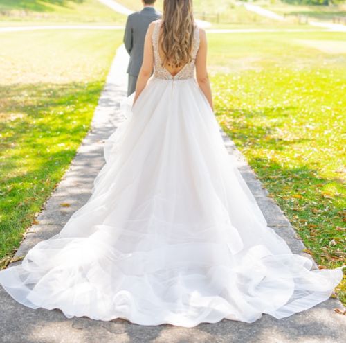 Alterations done incl. adding a bustle ($475 worth total). Dress hemmed for 5'6.5 height + a few inches for heels. I can send other measurements.