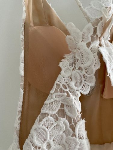 Ships as is - Pre-loved but in great condition! Pictures shows one tiny hole on tulle but not noticeable.