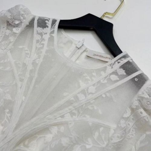 The Zimmerman Prima dress in ivory is sold out worldwide! A show stopper of a wedding dress or a dress for a special occasion if you want to stand out from the crowd. It is made of a beautiful silk organza, with lace sleeves and a scalloped hem - with zippers in the back and at the end of the arms. The dress is new because I ordered the wrong size. The Zimmerman brand size is a 1 which is a US 6.