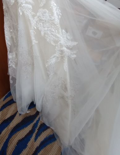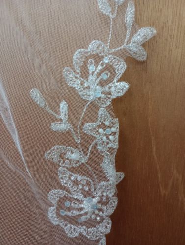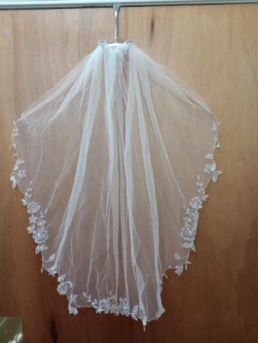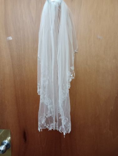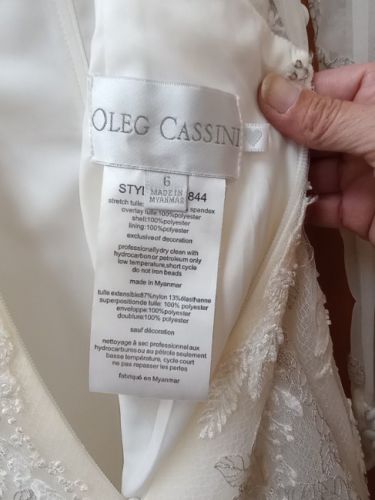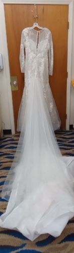 Oleg Cassini size 6 mermaid long sleeve dress and embroidered mid veil. Worn once. Good condition, no stains.