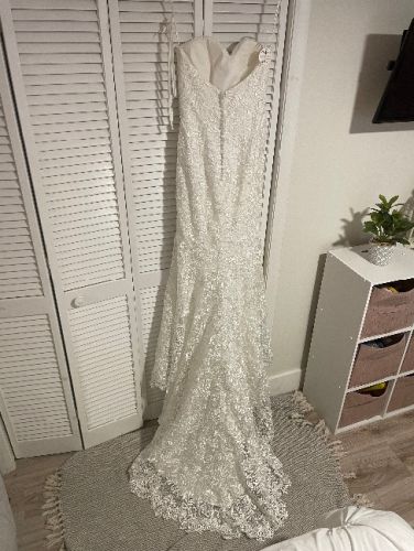 Brand new, never worn wedding dress from Brides of Florida. Bought in Miami but decided to go with a different style. It’s a beautiful dress, gorgeous lace finishes with sweet heart neckline. Color is ivory. I only tried it on at the boutique when I bought it and just put it on real quick to take the picture for a close up image. Paid 1100 on sale, so I can’t even imagine regular price. Kept in bag