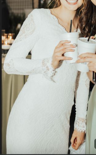 Long sleeve wedding dress. Originally $1800, no alterations (except addition of bussle) made.