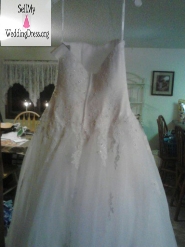David’s Bridal Wedding Dress and veil, BRAND NEW. Purchased on January 14, 2013, has not been altered or worn. The bride has decided that this dress is just not the one she wants. This is a white David’s Bridal Strapless Tulle Ball gown with lace wedding dress, size 8. The only name I can see on the tag in the dress say, Exclusive of Decoration, Style # WG3316. The veil is called TR Elbow, pearl N bead edge, it is about 28” long, and it would be considered waist length. The dress and the veil are absolutely beautiful and it looks great on. Would like to sell both, but will consider selling them separately