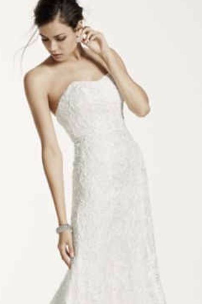 Ivory Lace Overlay Charmeuse Weding Dress with Train - Trumpet/Mermaid silhouette adds a sexy, sleek and sophisticated look to accent curves. The back is zip up with a traditional button down look and a chapel train to top-it-off. The gown is fully lined with a sweetheart neckline. Elegant and unique, this gown balances sexy glamour with a touch of timeless beauty. Lace-over-charmeuse is both ultra-feminine along, with a chic, beaded soutache floral detail that makes for a rich sparkle-down-the-aisle look. The train measures at 47" with no bustle and 36" with bustle, so definitely a dress you can dance in!