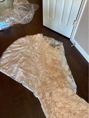 Alfred Angelo vintage dress. Size 10 but fits like a size 8. The color is Ivory rose gold. Brand new with tags.