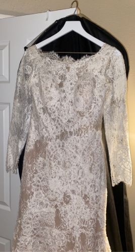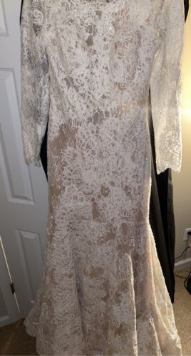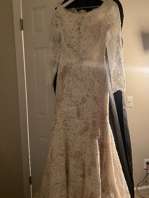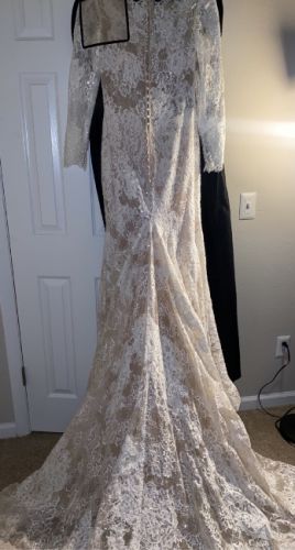 This is a gorgeous long sleeve lace and satin dress, with sewn in sequins. It’s beautiful and was only worn when tried on and I simply changed my mind about this being THE dress.
