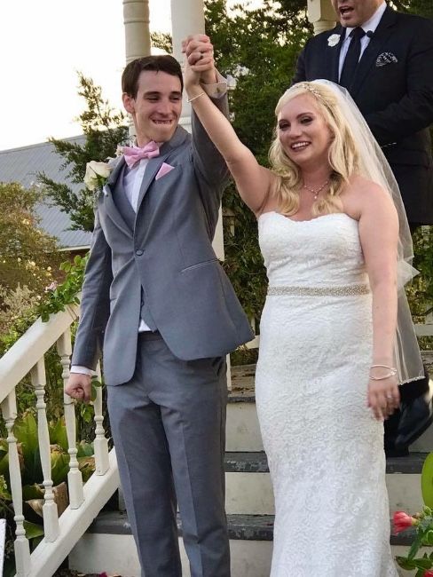 Strapless, lace dress with medium train + sparkly belt