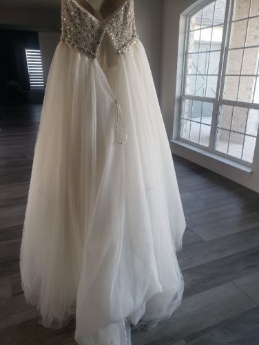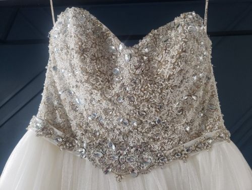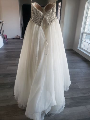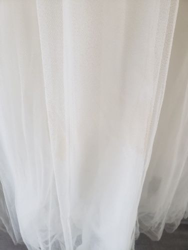 Has some stains as it wasn't cleaned after use, other than that its in great condition. Including the petticoat as well as veil.