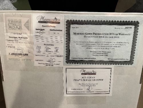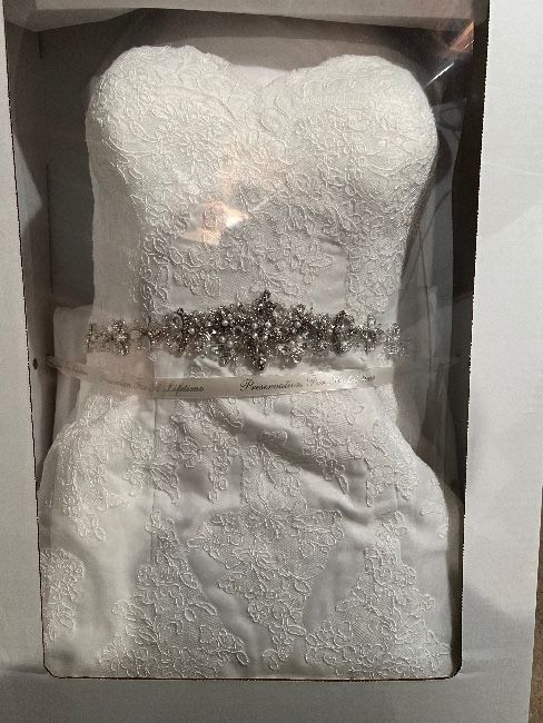 Strapless, sweetheart, trumpet dress. Worn once, cleaned and preserved.