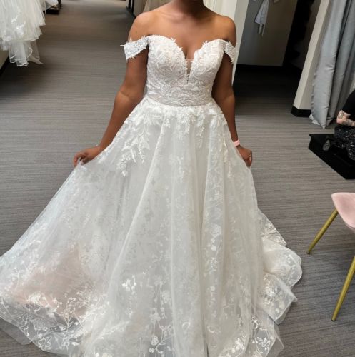 Gorgeous A-Lime wedding dress by Mon Cheri.