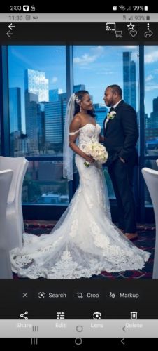Martina Liana wedding dress. The size is between size 8 and 10. Stunning gown, worn once. No stains, no snags, no flaws. Size 8 can fit a street size 10.