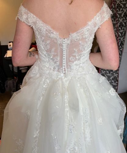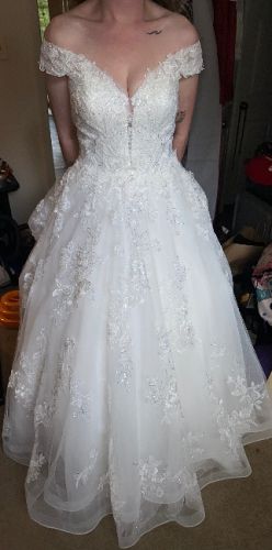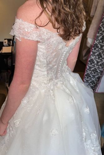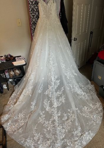 Brand new wedding dress only worn for alterations and pictures. Decided on another dress after I paid.