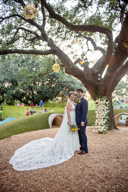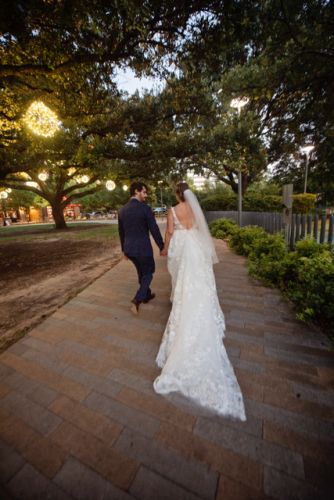 This dress was a dream, completing my wedding day crowning my as bride and queen, for real, I was stopped by random people to tell me how miraculous I looked. The v-neck cut doen the back and front, with fantasy mesh, and a beautiful almost 3 ft train that can be rouched up, was all it took to make me feel sensual and comfortable at the same time. It is a white, with embroidered flowers that look like they will float away at you walk. Lace and tull,A-line cut, with 3-D flowers, and it will also come with the veil.