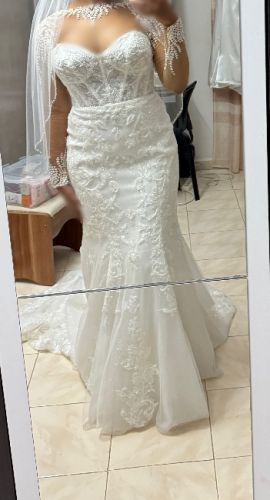 Hello my soon to be bride đ Congratulations! If youâre looking for a beautiful sleeveless dress with a train, youâve come to the right person! (It also has a bustle at the back of the dress to hold it up!)
