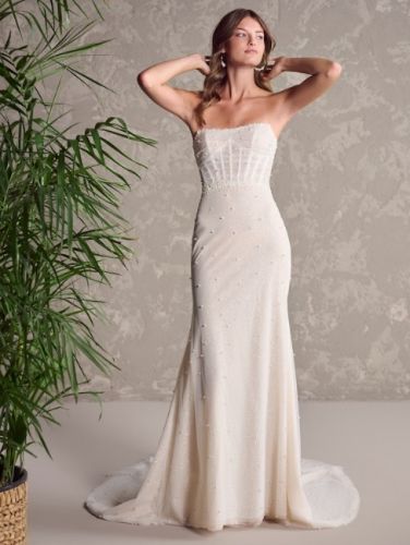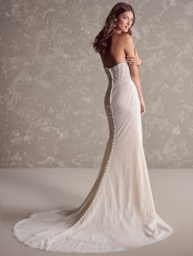 Fit-And-Flare Pearl Bridal Gown With Illusion Corsetry And Vintage-Inspired Buttons