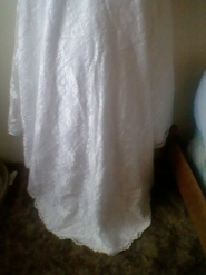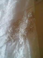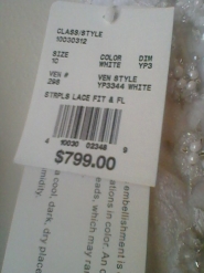 This gown is brand new from Davids Bridal. Its a strapless lace fit and flare gown with side split. Still in the box and the bag it came in. Tags in tact and never worn. I still have the receipt as well. I received this gown in June 2012 and its been in the closet since. You can view the dress on a model and get close up views of it as well at davidsbridal.com and type in the upper right hand corner in the search keyword or style # area :yp3344. Thats the gown. White size 10. Again never worn, still in bag with tags. Mint condition. Would be nice to see someone get this dress, its very beautiful. I paid 799.00. Im asking 675.00 because I see right now that Davids bridal has it on sale right now for 724.00. I did have to take it out of the box and bag to get photos of it.
