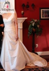 Ivory White, No alteration, perfect fit especially for pear shape figure. Design gives flatter tummy and small buttock! Sell with matching veil as seen in picture