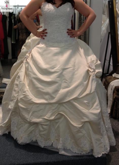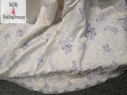 *Very minimal Defects: There are 3 tiny spots on the end of the train, which are hardly noticeable! However, I have purchased a 1/2 of yard of extra fabric (lace) from the designer and it can very easily be removed from the train. I will include this, free of charge. ($150 Value) If you don't feel it is necessary to fix, then use the fabric for any accessories you would like! (The lace has been ordered, as it is hand-beaded, it will be in around June/July) I will be more than happy to send it when it comes in, as well!