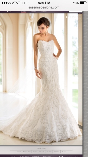 This Lace over Dolce Satin lace wedding dress from the Stella York collection features a lovely sweetheart neckline and trumpet silhouette that is both slimming and sexy. You’ll love how this vintage lace wedding dress takes an eye-turning shape with a close-fitting bodice that hugs the body down through the hips and then gracefully flares out to the hem. Fine detailing, like the slimming vertical lace pattern and elegant scalloped Lace edging along the sweetheart neckline and hem, makes this slimming designer gown a perfect complement to your attitude, style and spirit.
