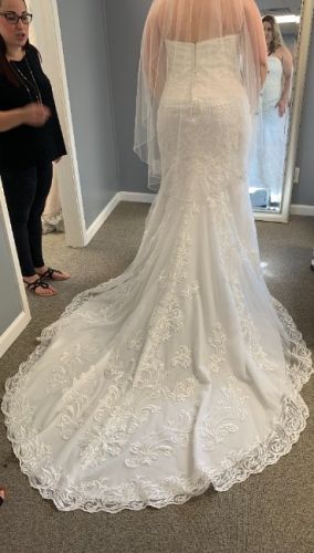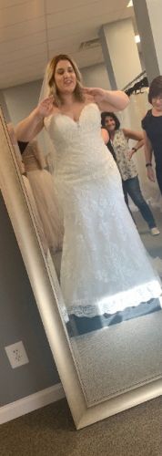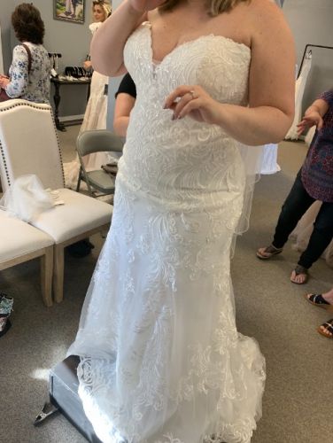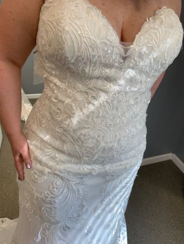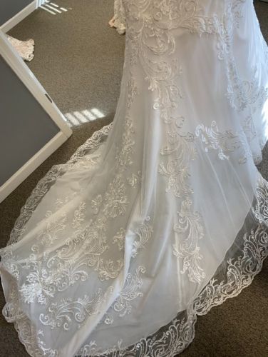 Brand New, Never Altered Wedding Dress with tags still on. I love this wedding dress but sadly it does not fit me anymore. Bridal size 20 which is Street size 16. Completely unaltered and only ever tried on once at pick up. Breathable Dress bag included. Extra lace & buttons.