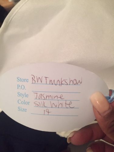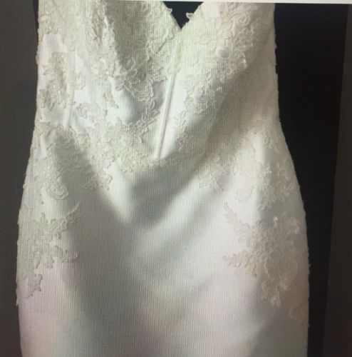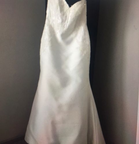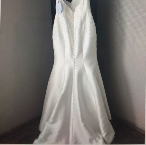 This dress was purchased in 2019 and never worn, because a different dress was purchased. There is a small tear near the buttons in the back (shown in the photos) which a tailor can fix. The dress will be shipped in the garment bag shown in the photos.