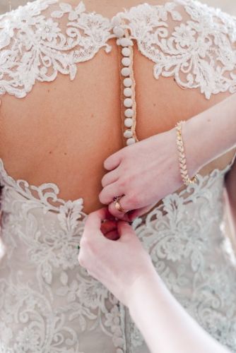 Ivory Lace, Tulle and Royal Organza over Ivory Gown with Ivory Tulle Illusion with sequins and cap sleeves. Also has diamond back cut out with mesh and buttons. Zips under buttons.