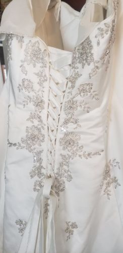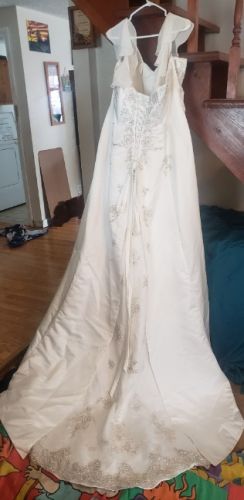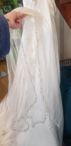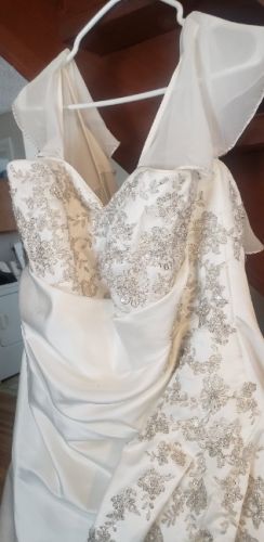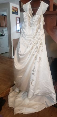 26w David's bridal wedding gown. Worn once, no stains. Beautiful lace and beads work, optional snap on sleeves and veil all included. Originally paid close to $1000 but selling for $600 obo