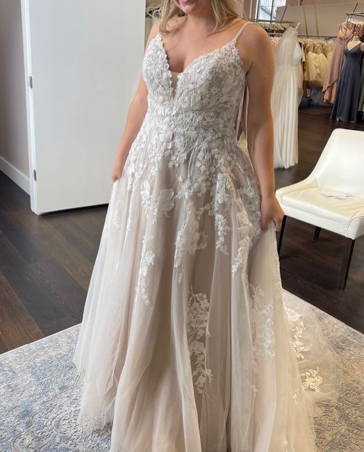 Never worn, just tried on. No alterations. Brand new dress!!