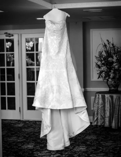 CWG565 Oleg Cassini dress. Size 16, hemmed to just touch the floor and I’m 5’4. Right now it’s still in the box it was preserved in.