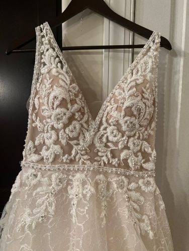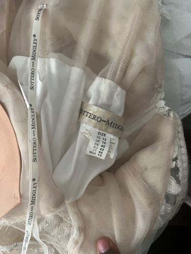 Ladies I am selling my wedding gown . It is a Sottero & Midgley Size 12 ivory color wedding gown. I am only asking for $1400 willing to negotiate the price if needed and ship it. I have no space for it. It’s absolutely stunning. The sleeves was altered to hold my 36DD goodies perfectly. I’m 165lbs and 5’3” feet tall. The original price is $2200 and only worn for 3 hours (Changed my dress after dinner) I posted a picture of me in the dress to show you. How beautiful it looked on me. It will make you as beautiful as it made me look on my wedding day.